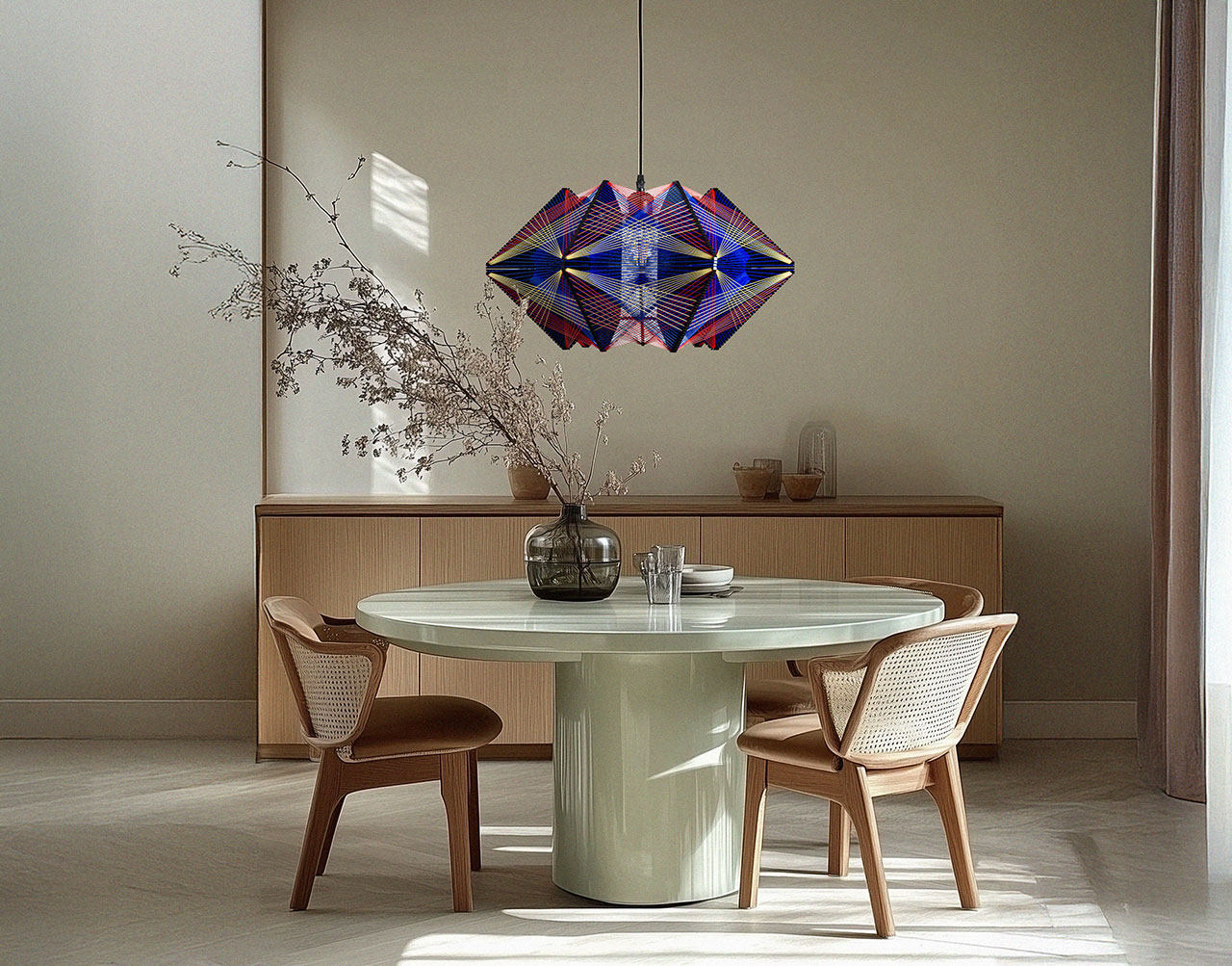 lampa Baaura ręcznie robiona to unikalne połączenie konstrukcji z pleksi, oplotu z żyłki oraz różnorodnych wariantów kolorystycznych, które idealnie dopasują się do każdego wnętrza