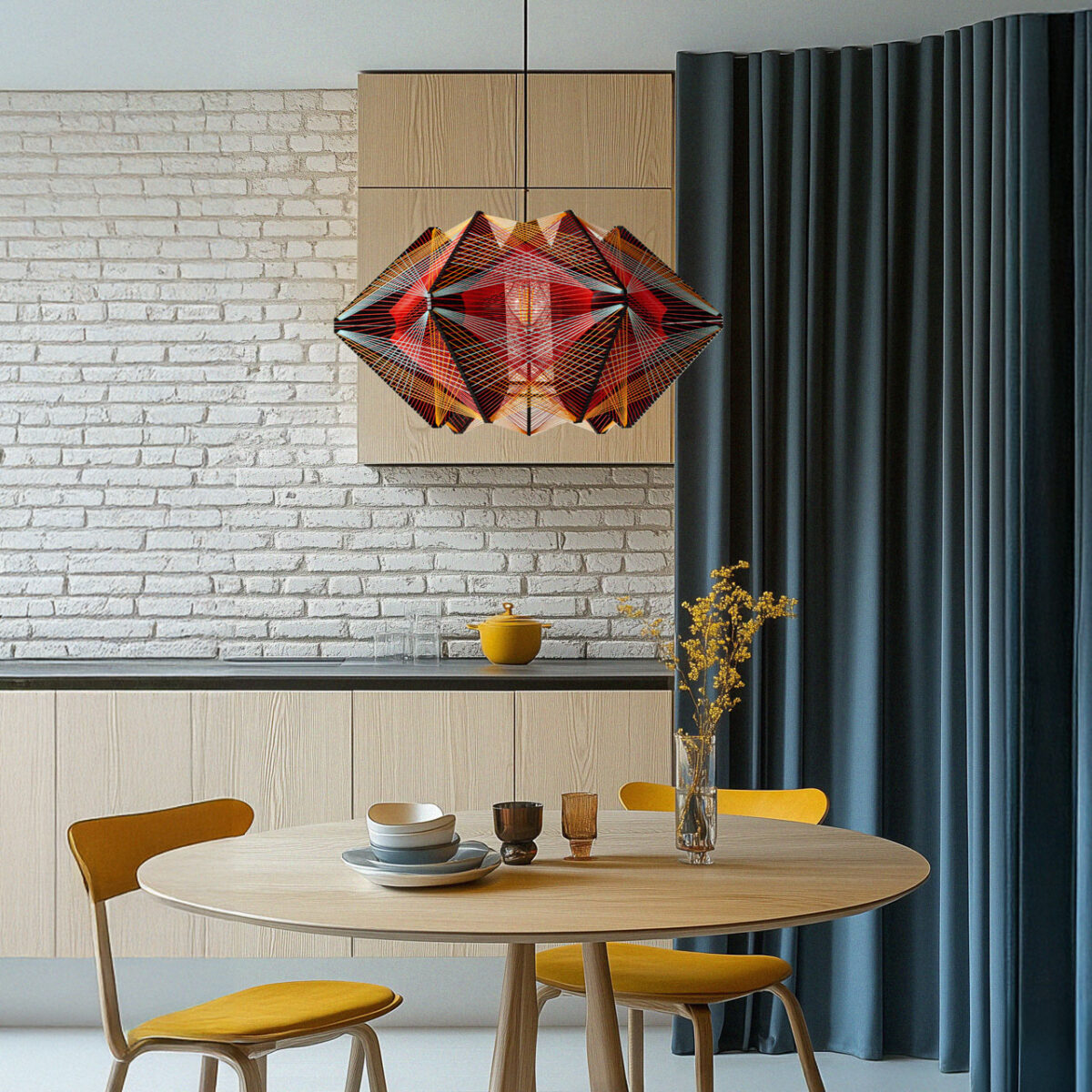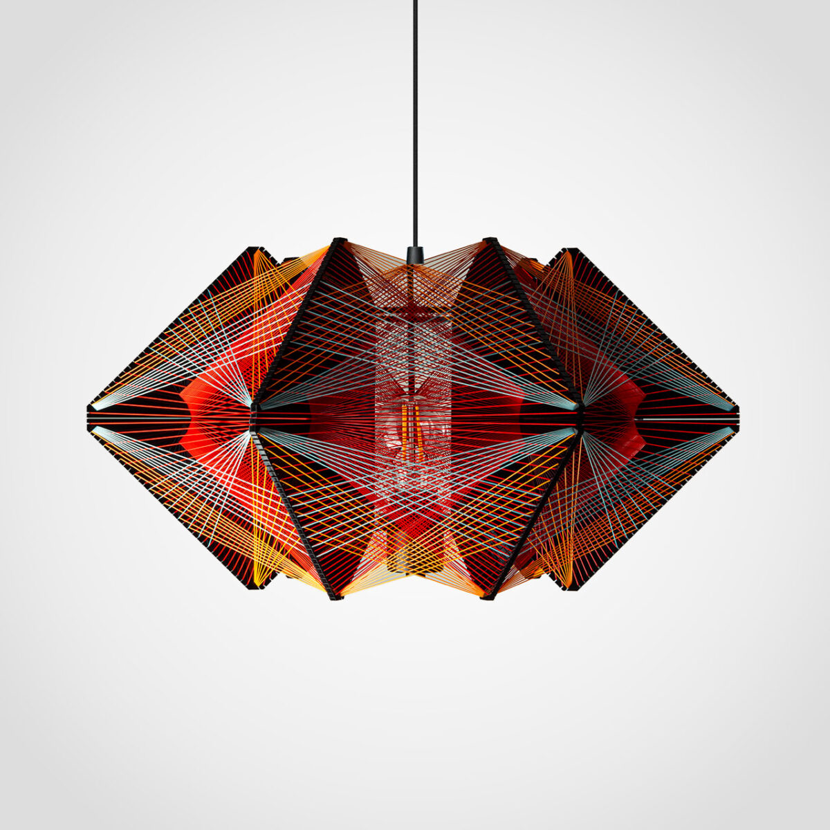 Wyjątkowa wisząca lampa Baaura z czarnej plexi i oplotem z żyłek w energetycznych odcieniach czerwieni, pomarańczu i jasnego błękitu to połączenie nowoczesnego designu i wyrazistej kolorystyki. Ręcznie wykonana, zachwyca precyzją oraz geometryczną formą, która nadaje wnętrzu dynamiczny charakter. Ta lampa idealnie wkomponuje się w aranżacje w stylu eklektycznym, industrialnym lub nowoczesnym, stając się zarówno praktycznym źródłem światła, jak i efektowną dekoracją. Dodaj swojej przestrzeni niepowtarzalnego wyrazu dzięki lampie, która łączy sztukę i funkcjonalność!