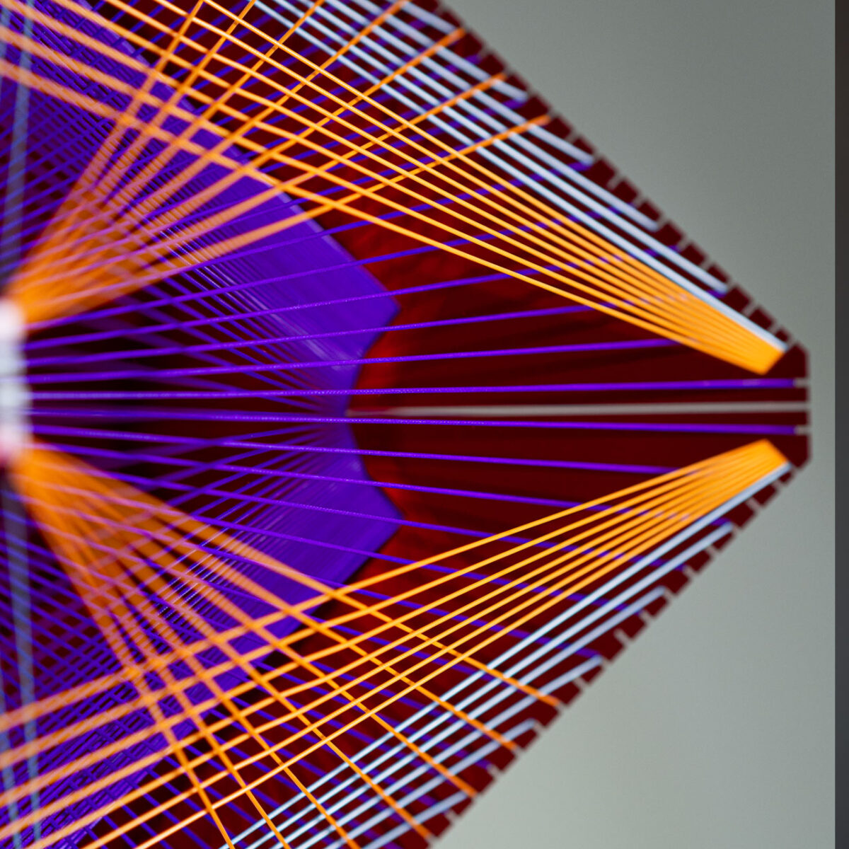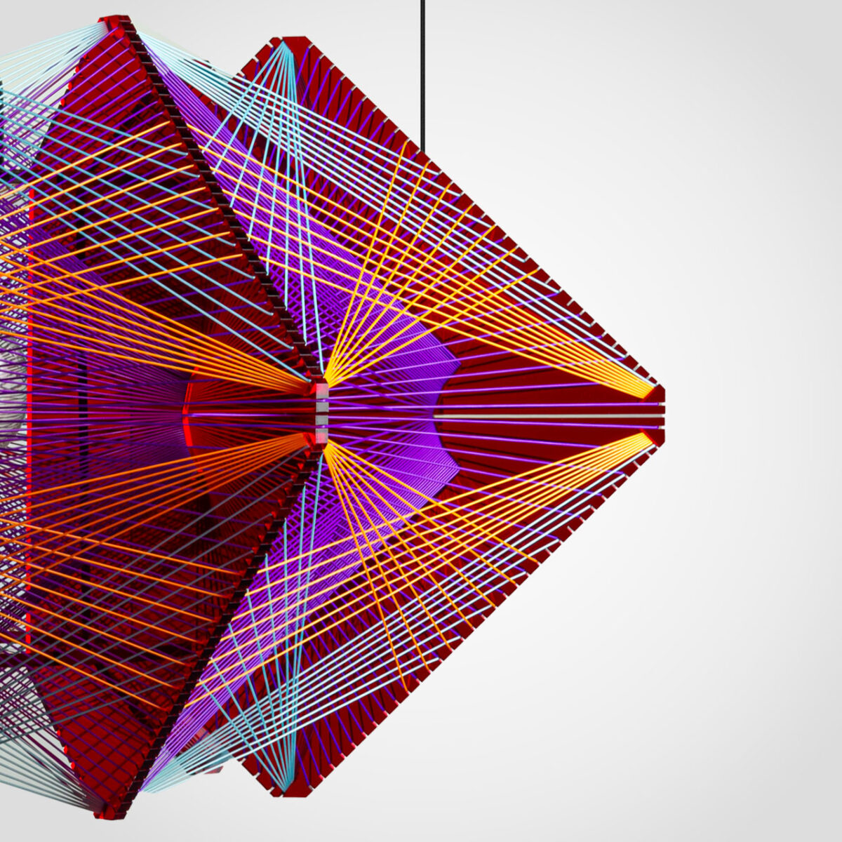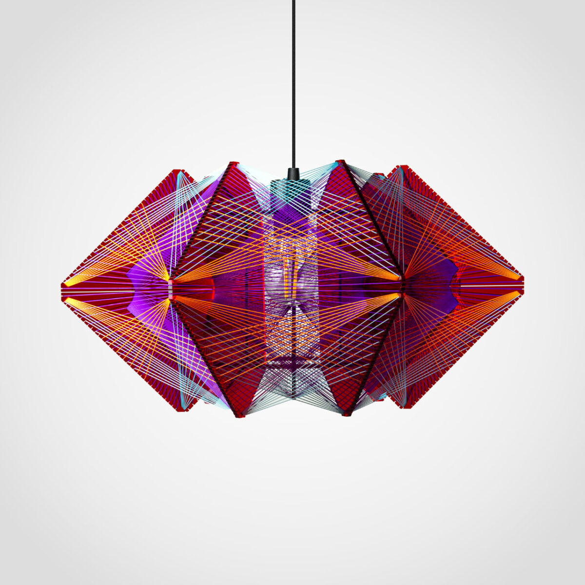 Ta designerska lampa wisząca przyciąga uwagę swoim unikalnym wyglądem i precyzją wykonania. Połączenie geometrycznej formy z kolorowym oplotem oraz konstrukcją z wytrzymałej czerwonej plexi tworzy efektowną dekorację i funkcjonalne oświetlenie. Intensywne odcienie żyłek: fioletu, pomarańczowego i jasno niebieskiego nadają jej wyrazisty charakter. Idealnie wpisujący się w nowoczesne wnętrza w stylu eklektycznym, industrialnym czy japandi. Każda lampa jest ręcznie wykonana z najwyższą dbałością o szczegóły, co czyni ją wyjątkowym dodatkiem do Twojego domu. To więcej niż lampa – to prawdziwa sztuka światła!