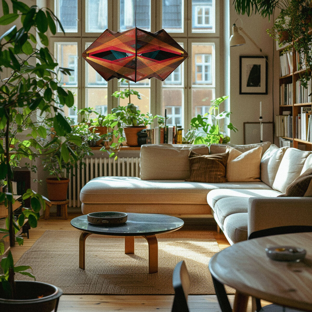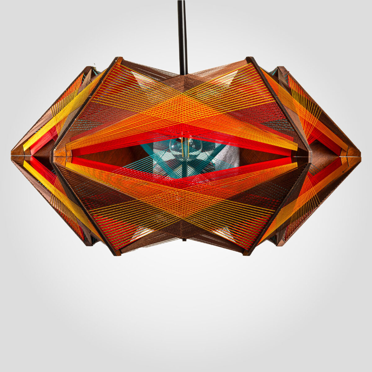 Wyjątkowa drewniana lampa wisząca Baaura z ręcznie wykonanym oplotem z nici w odcieniach turkusu, pomarańczu, brązu i żółci to idealne połączenie natury i nowoczesnego wzornictwa. Jej geometryczna forma i ciepła kolorystyka wprowadzają do wnętrza przytulny, a zarazem wyrazisty akcent. Wykonana z naturalnych materiałów, doskonale sprawdzi się w stylach boho, skandynawskim czy rustykalnym. Ta lampa to nie tylko praktyczne oświetlenie, ale także dekoracja, która przyciąga uwagę i podkreśla indywidualny charakter Twojego domu. Dodaj unikalnego światła do swojego wnętrza!